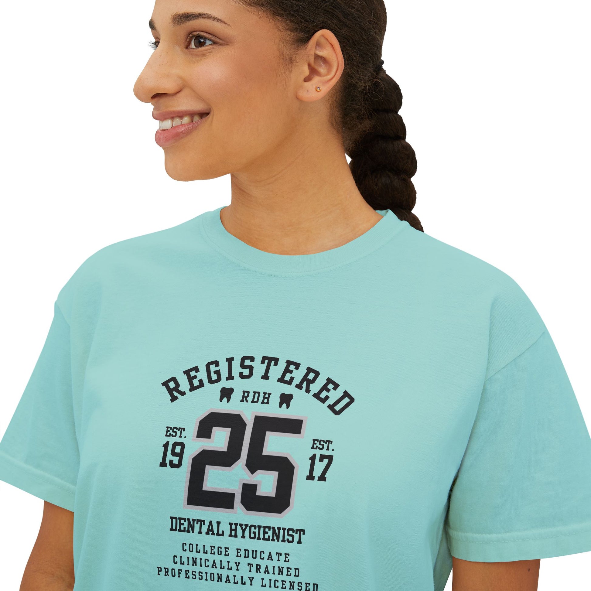 Vintage style dental hygiene pride for the 2025 graduate. Welcome to a profession with over 100 years of history. Show off your accomplishment and dedication to your patients with this boxy fit tee.